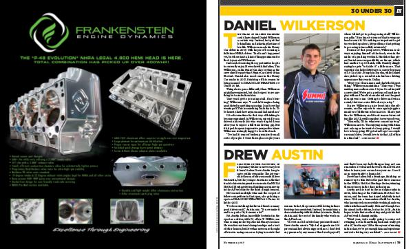 DREW AUSTINFollowing in the footsteps of a legendary father is never easy, but it hasn’ t taken Drew Austin long to carve out his own niche. The 24-yearold is the son of ultra-successful driver Pat Austin, but the younger Austin is on the fast track to his own impressive success in the NHRA Hot Rod Heritage Series, finishing as runner-up in the A / Fuel class for the third straight season. He’ s earned multiple wins and the respect of fellow competitors in that span, also grabbing a spot on DRAG ILLUSTRATED’ s 30 Under 30 list for 2017.