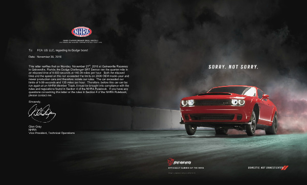 S O R R Y. N O T S O R R Y. OFFICIALLY BANNED BY THE NHRA Dodge is a registered trademark of FCA US LLC.