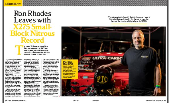 Despite the rise of boosted engine combinations in X275, Ron Rhodes has stuck to his tried-andtrue nitrous-assisted small-block bullet with overwhelmingly positive results.