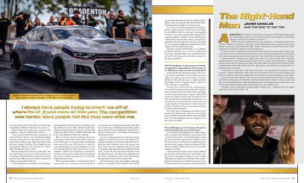 It was a taxing experience for Martin and his small crew , which consists of crew chief Javier Canales , Martin ’ s best friend , Michael Beene , Martin ’ s wife , Cherish , and their young son , Dax . There were no weekends off and no time to unwind , other than the hours going down the road . “ I drive the rig , Javi drives the truck with the apparel trailer , and Michael usually flies into the races ,” says Martin , who works with Proline Racing ’ s Steve Petty on the tuning side .
