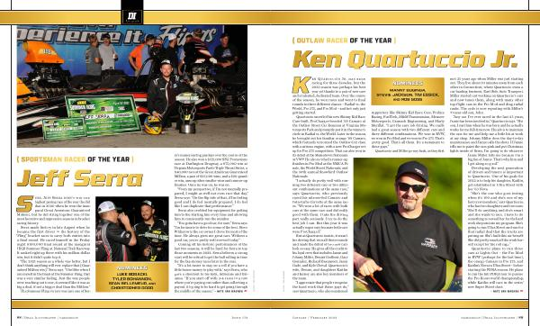 But as Quartuccio insists , it wasn ’ t his driving that won all those rounds and made the debut of two new cars look so easy . He gives all the credit to his loyal crew that includes Jamie and Johnny Miller , Dennis Godbout , Gary Gonzalez , Richard Beaumont , Jason Gade , and Kyle Cheval . Quartuccio ’ s wife , Denise , and daughters Kaitlin and Kelsey are also key members of the team .