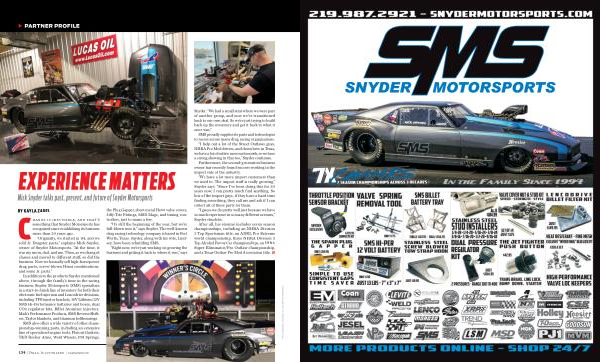 “ It ’ s still the beginning of the year , but we ’ re full-blown into it ,” says Snyder . The well-known drag racing technology company is based in Fort Worth , Texas . Snyder , along with his wife , Lindsey , have been rebuilding SMS .