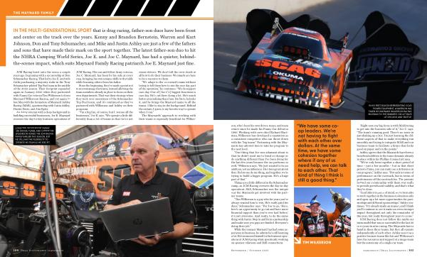 IN THE MULTI-GENERATIONAL SPORT that is drag racing , father-son duos have been front and center on the track over the years . Kenny and Brandon Bernstein , Warren and Kurt Johnson , Don and Tony Schumacher , and Mike and Justin Ashley are just a few of the fathers and sons that have made their mark on the sport together . The latest father-son duo to hit the NHRA Camping World Series , Joe E . and Joe C . Maynard , has had a quieter , behindthe-scenes impact , which suits Maynard Family Racing patriarch Joe E . Maynard just fine .