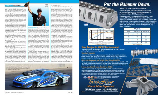 Test Engine : GM 6.2L LS3 short block with 10.43:1 compression , Trick Flow GenX ® 255 square port cylinder heads ( TFS-3261T002-C01 ), Trick Flow Track Max ® hydraulic roller cam ( TFS-32603001 ), stock L92 intake with 90mm throttle body , Kooks headers with 1 7 ⁄ 8 " primaries , and dual exhaust with 3 " Flowmaster mufflers .