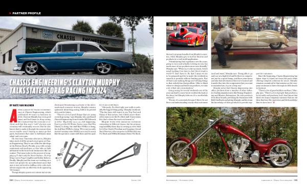 After almost 40 years of experience at Chassis Engineering , which celebrated 40 years in business in 2021 , Clayton Murphy has seen good times and bad times in drag racing . He ’ s learned that the economy is cyclical , and that this year ’ s “ soft ” election year economy will eventually recover . But he also knows that to make it through the seasons when racers maybe aren ’ t buying as many go-fast parts , businesses that cater to hobbyists must adapt and overcome . On this busy Thursday afternoon , Murphy takes stock of all the projects in progress at Chassis Engineering . They ’ re one of the few fab shops in the Riviera Beach , Florida , area with certain equipment and machines , so they take on light industrial work from local businesses like car washes . The team is also in the process of wrapping up T-shirt carts for Street Outlaws : No Prep Kings racers Paige Coughlin and Robin Roberts . Finally , Murphy and his team are working on a street rod project for an undisclosed racer that may or may not involve stuffing a 959-cubic-inch nitrous engine into an otherwise stock-appearing ’ 69 Camaro .