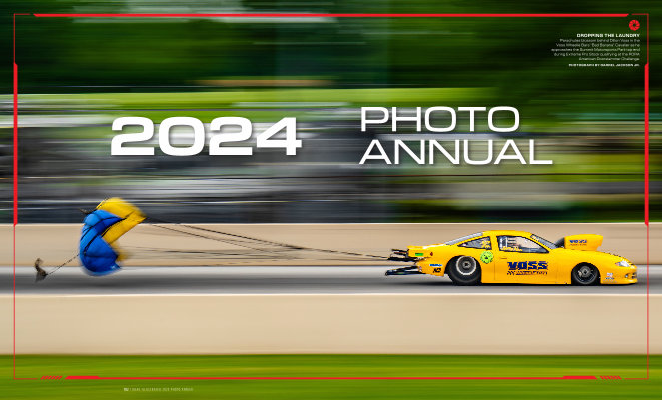 Voss Wheelie Bars “ Bad Banana ” Cavalier as he approaches the Summit Motorsports Park top end during Extreme Pro Stock qualifying at the PDRA American Doorslammer Challenge .