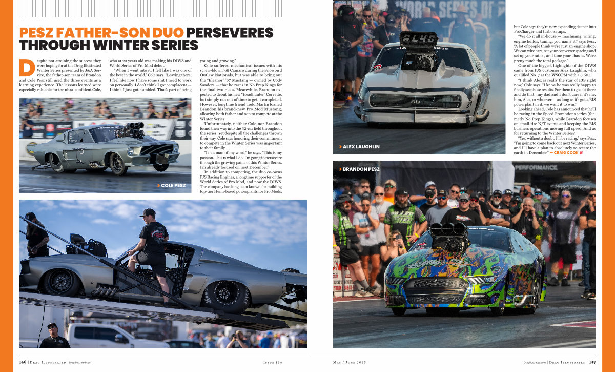 “ I think Alex is really the star of PJS right now,” Cole says.“ I know he was really happy to finally see those results. For them to go out there and do that … my dad and I don’ t care if it’ s me, him, Alex, or whoever— as long as it’ s got a PJS powerplant in it, we want it to win.”