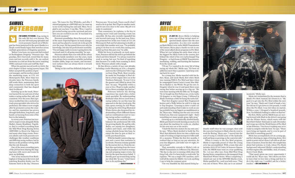 SAMUELPETERSON FOR SAMUEL PETERSON, drag racing is the only life he’ s ever known. The 24-year-old track prep specialist and event promoter based out of Michigan has been immersed in the sport thanks to a deeply rooted family legacy that stretches across multiple generations of dragstrip operators.