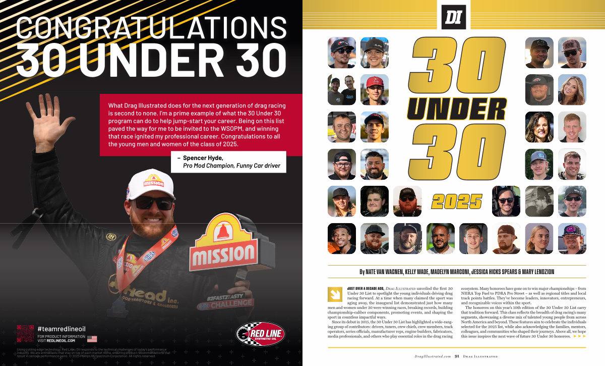What Drag Illustrated does for the next generation of drag racing is second to none. I’ m a prime example of what the 30 Under 30 program can do to help jump-start your career. Being on this list paved the way for me to be invited to the WSOPM, and winning that race ignited my professional career. Congratulations to all the young men and women of the class of 2025.