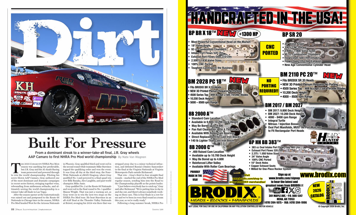 NOT LEGAL FOR SALE OR USE IN CALIFORNIA ON ANY POLLUTION CONTROLLED MOTOR VEHICLE © Copyright 2026 Brodix, Inc.