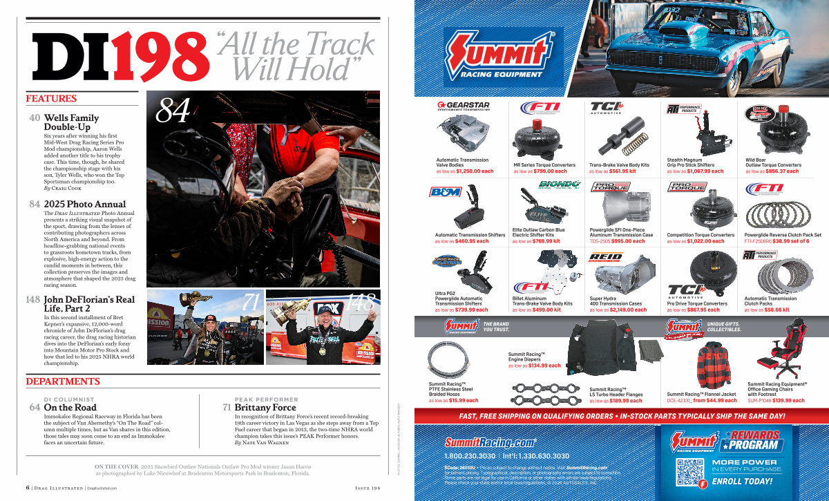 The Drag Illustrated Photo Annual presents a striking visual snapshot of the sport, drawing from the lenses of contributing photographers across North America and beyond. From headline-grabbing national events to grassroots hometown tracks, from explosive, high-energy action to the candid moments in between, this collection preserves the images and atmosphere that shaped the 2025 drag racing season.